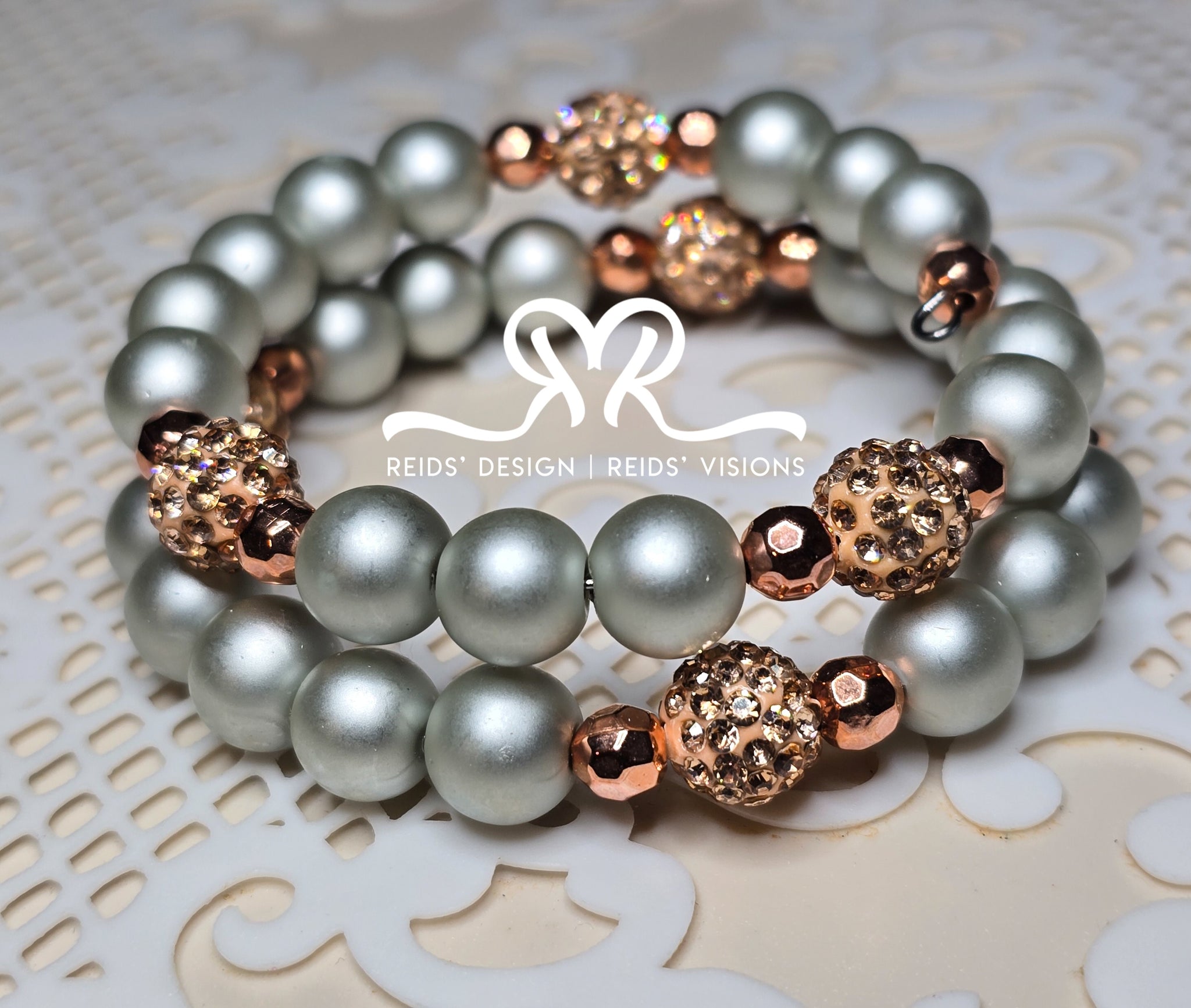 New 10mm Wrap Bracelet Designed with Matte Glass Pearls and Rinestone Beads...