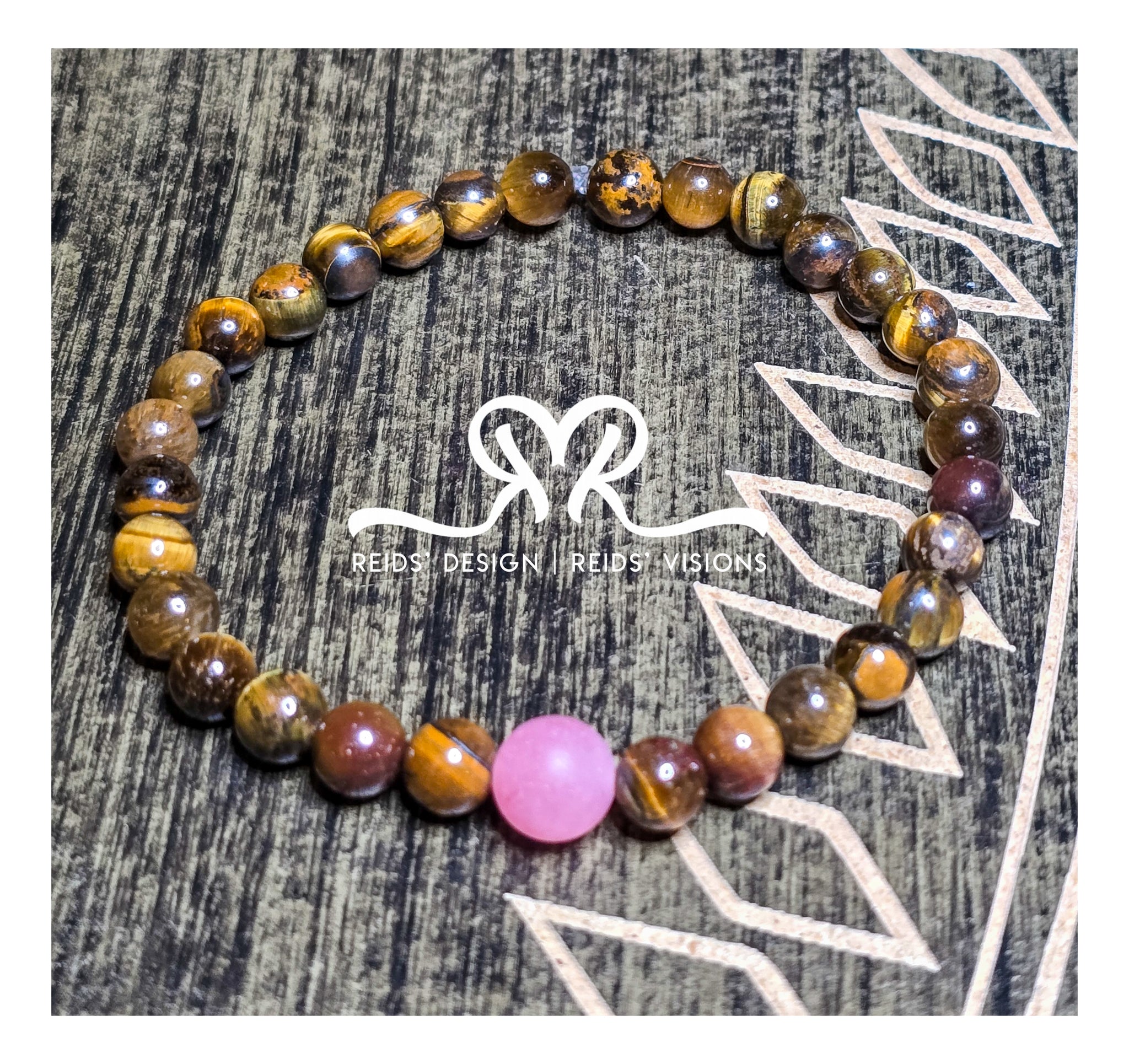 6mm Tiger Eye with Pink gemstone Breast Cancer Awareness inspired design... size 7.5"