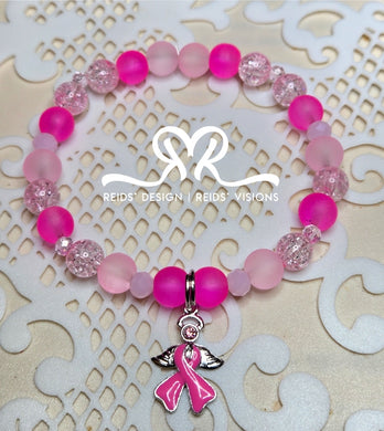 • Pink Breast Cancer Awareness 8mm Glass, Acrylic and Glass Beaded Bracelet ( size 7.5")